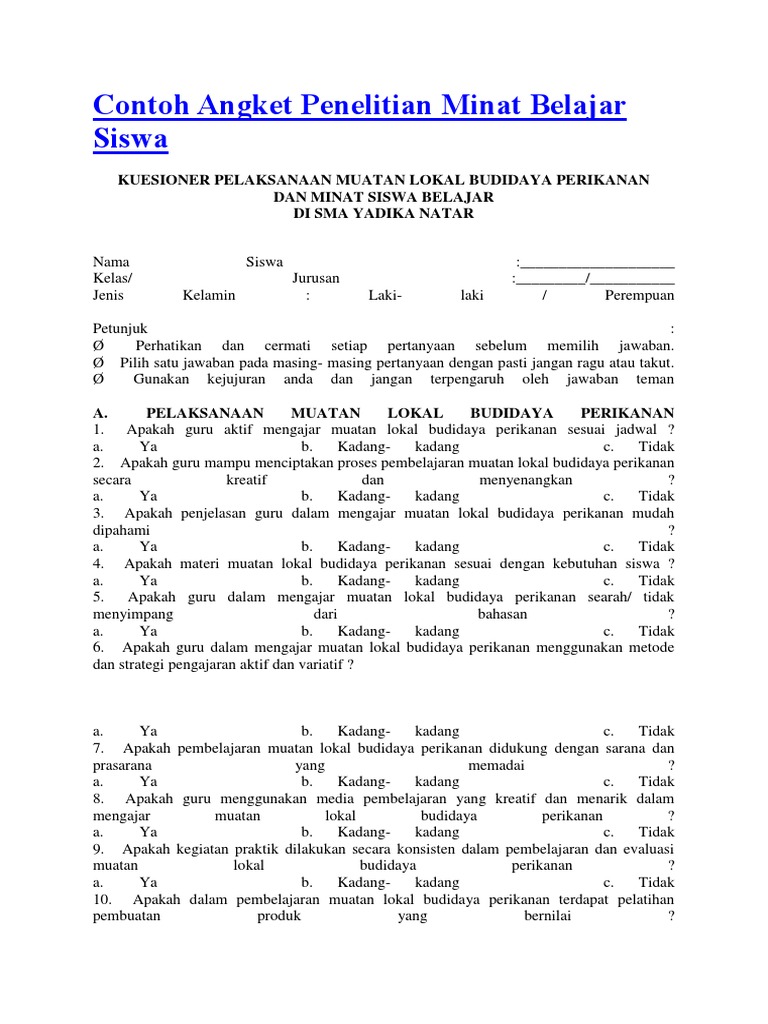 Contoh Angket Dalam Sosiologi - Simak Gambar Berikut via superfighters.website