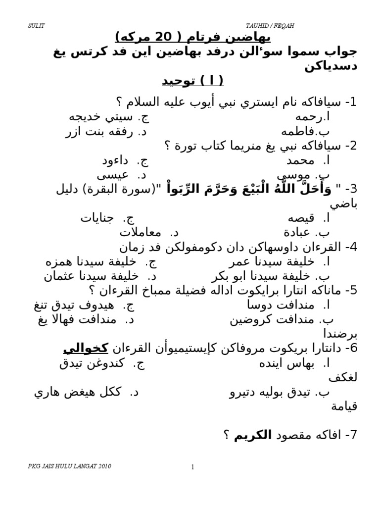 Soalan Jawi Tahun 2 Pdf